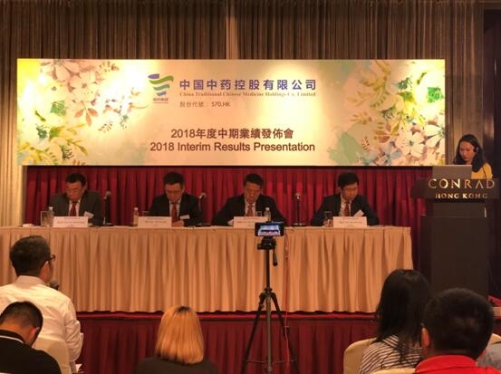 8月15日,中藥控股投資者推薦會(huì)暨2018年中期業(yè)績(jī)發(fā)布會(huì)在香港召開。發(fā)布會(huì)是采用線上線下同步的方式舉行。中藥控股董事局主席吳憲,總裁王曉春,副總裁趙東吉,首席財(cái)務(wù)官司徒民作為主講嘉賓出席發(fā)布會(huì)。