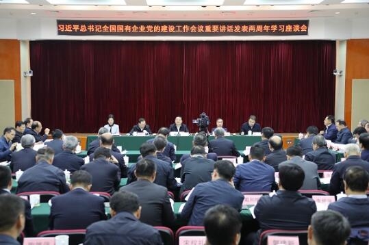 10月10日,在習(xí)近平總書記全國國有企業(yè)黨的建設(shè)工作會議重要講話發(fā)表兩周年之際,國務(wù)院國資委黨委召開學(xué)習(xí)座談會,深入學(xué)習(xí)貫徹習(xí)近平新時代中國特色社會主義思想和黨的十九大精神,組織國資委和中央企業(yè)黨員干部重溫習(xí)近平總書記在全國國企黨建會上的重要講話,認(rèn)真總結(jié)兩年來貫徹落實的進(jìn)展成效,不斷開創(chuàng)中央企業(yè)改革發(fā)展和黨的建設(shè)新局面。國資委黨委書記郝鵬出席學(xué)習(xí)座談會并講話。中央紀(jì)委國家監(jiān)委駐國資委紀(jì)檢監(jiān)察組組長、國資委黨委委員陳超英主持座談會。國資委黨委委員出席會議。中央紀(jì)委國家監(jiān)委、中央組織部、中央黨的建設(shè)工作領(lǐng)導(dǎo)小組秘書組有關(guān)部門負(fù)責(zé)同志應(yīng)邀參加會議。