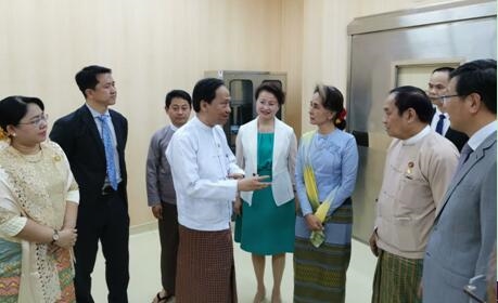 緬甸國務資政昂山素季、衛(wèi)生與體育部部長敏推、馬圭省省長昂莫紐,中國駐緬甸大使洪亮,國藥集團副總經(jīng)理、國藥國際董事長石晟怡,緬中交流合作協(xié)會執(zhí)行主席李伯波、那茂人民醫(yī)院院長以及中緬各界代表出席了啟用儀式。