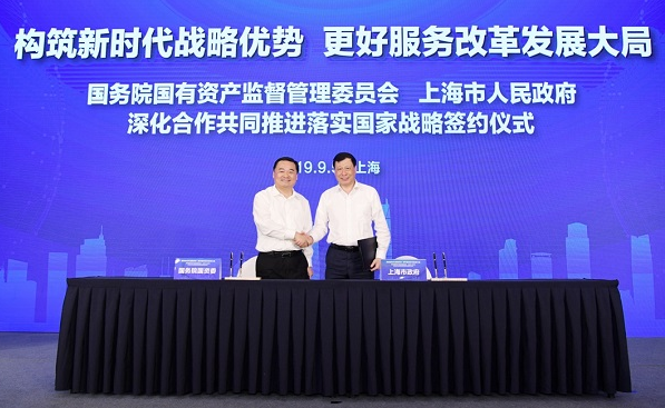 9月5日,國(guó)務(wù)院國(guó)資委與上海市政府在滬簽署深化合作共同推進(jìn)落實(shí)國(guó)家戰(zhàn)略協(xié)議,共同深入學(xué)習(xí)貫徹習(xí)近平新時(shí)代中國(guó)特色社會(huì)主義思想、貫徹落實(shí)習(xí)近平總書(shū)記考察上海重要講話精神,以深化央滬合作、做強(qiáng)做優(yōu)做大國(guó)有企業(yè)、共同實(shí)現(xiàn)高質(zhì)量發(fā)展的現(xiàn)實(shí)舉措,共同構(gòu)筑新時(shí)代戰(zhàn)略優(yōu)勢(shì)、更好服務(wù)國(guó)家改革發(fā)展大局和經(jīng)濟(jì)社會(huì)發(fā)展全局。中共中央政治局委員、上海市委書(shū)記李強(qiáng)出席簽約儀式并講話。國(guó)務(wù)院國(guó)資委黨委書(shū)記、主任郝鵬在簽約儀式上講話,并與上海市委副書(shū)記、市長(zhǎng)應(yīng)勇簽署協(xié)議。上海市委常委、常務(wù)副市長(zhǎng)陳寅主持簽約儀式。國(guó)務(wù)院國(guó)資委副主任、黨委委員任洪斌,上海市委常委、副市長(zhǎng)吳清分別介紹了有關(guān)情況。