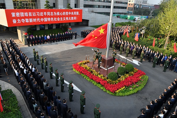 9月29日,國資委機關(guān)隆重舉行升國旗儀式,慶祝中華人民共和國成立70周年,全體干部職工深情高唱國歌,為偉大祖國送上最美好的祝福。國資委黨委書記、主任郝鵬出席并講話。升國旗儀式由國資委副主任、黨委委員趙愛明主持,國資委黨委委員、副部長級干部、二線老領(lǐng)導(dǎo),秘書長、總會計師、副秘書長,駐委紀檢監(jiān)察組、各廳局和直屬事業(yè)單位全體干部職工參加。