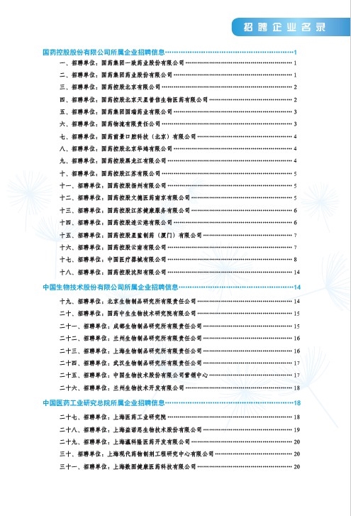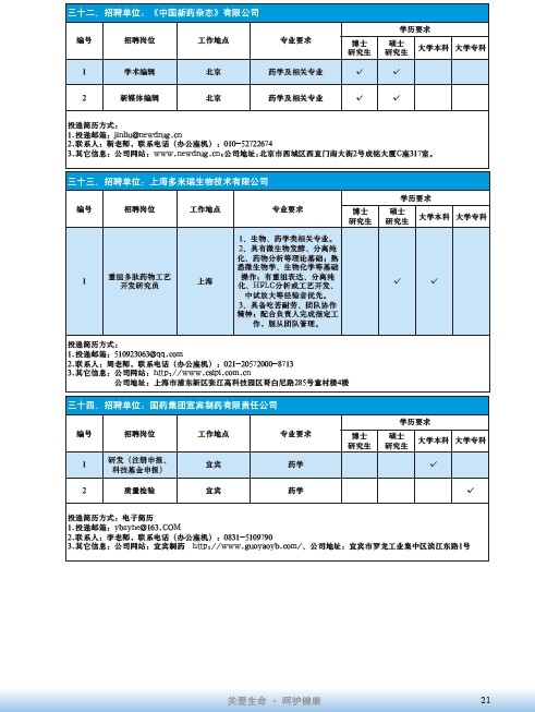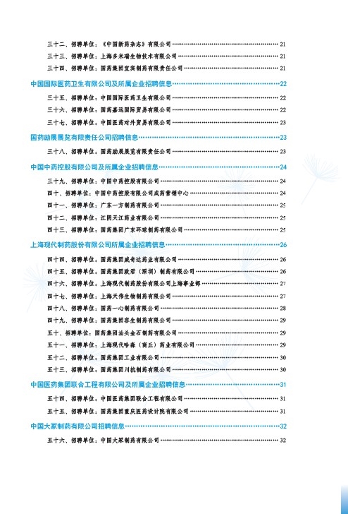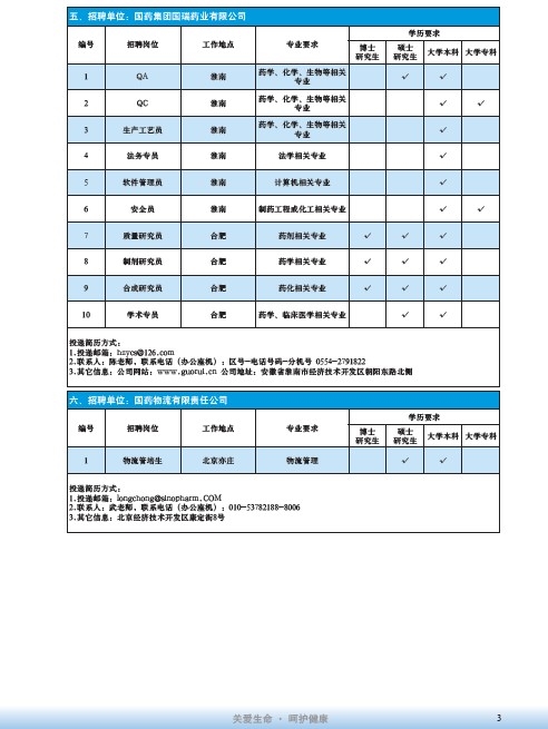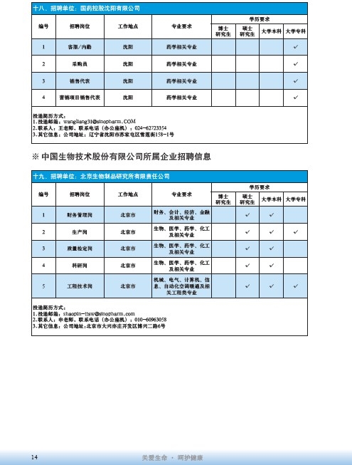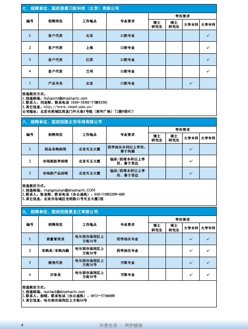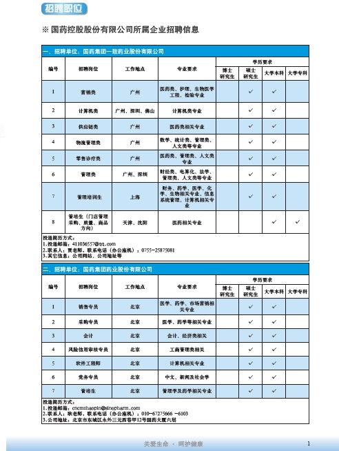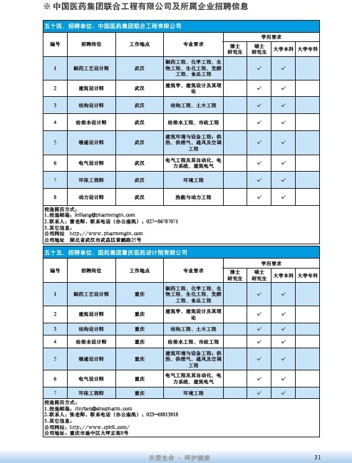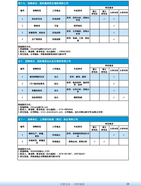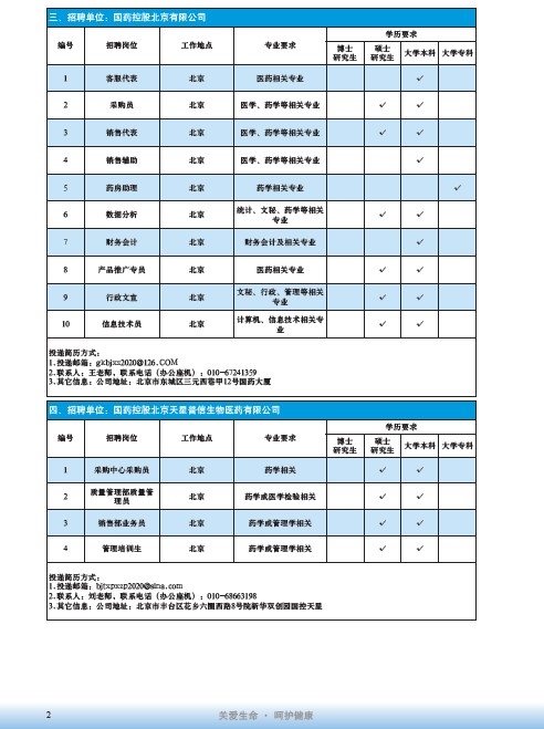 國藥集團2020屆高校畢業(yè)生招聘信息匯總表