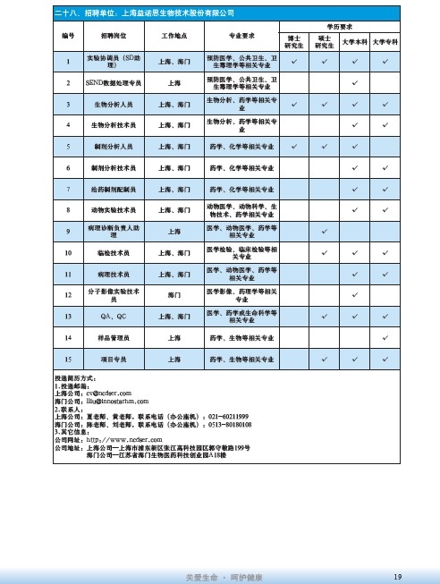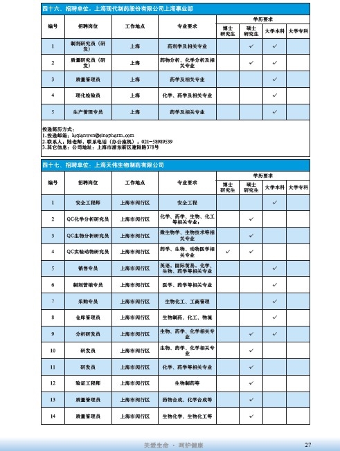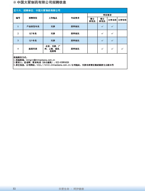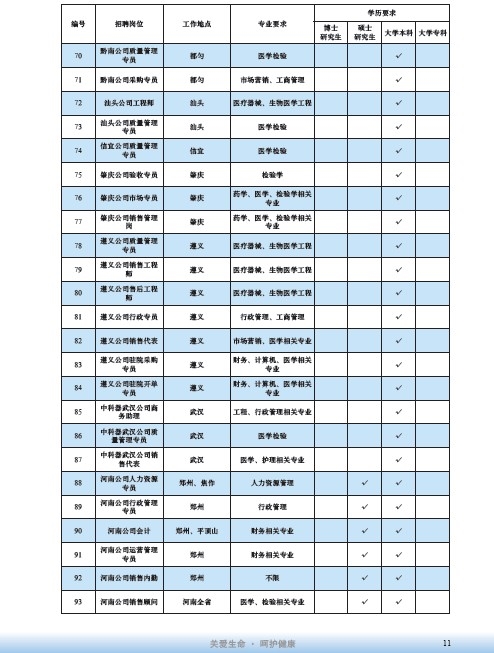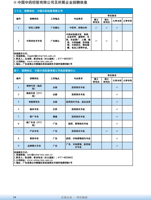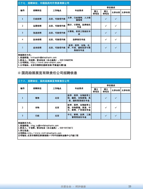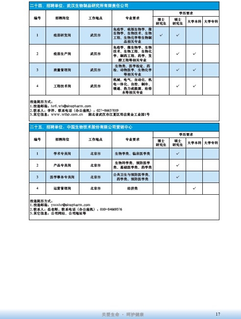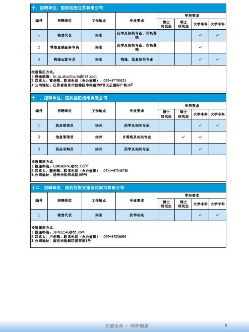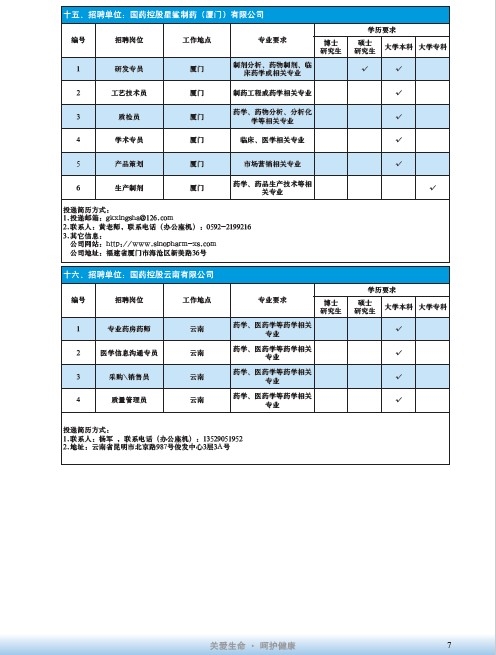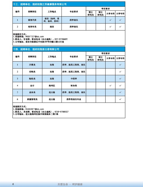 國藥集團2020屆高校畢業(yè)生招聘信息匯總表
