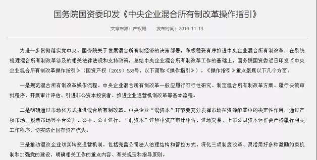 7.國(guó)務(wù)院國(guó)資委制定《中央企業(yè)混合所有制改革操作指引》