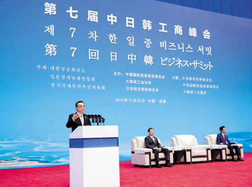 2019年12月24日,第七屆中日韓工商峰會(huì)在四川成都舉行,國務(wù)院總理李克強(qiáng)和韓國總統(tǒng)文在寅、日本首相安倍晉三出席會(huì)議并致辭。國藥集團(tuán)董事長、黨委書記劉敬楨受邀參加,會(huì)議期間,作為中方五家企業(yè)代表之一,接受三國領(lǐng)導(dǎo)人接見。