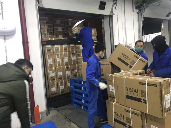 1月25日大年初一凌晨2時,國藥器械、河南亞都捐助的共計290余萬件疫區(qū)急需醫(yī)用防護類產(chǎn)品,包括醫(yī)用外科口罩、一次性使用醫(yī)用口罩、醫(yī)用帽、醫(yī)用手套等,從河南長垣送往武漢,并于當(dāng)日19時左右順利交付湖北省新型冠狀病毒感染的肺炎防控指揮部,將快速供應(yīng)相關(guān)醫(yī)療、疾控機構(gòu)使用。