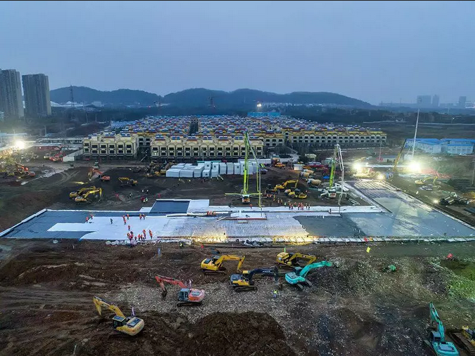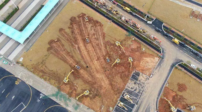 火熱的雷神山醫(yī)院建設現(xiàn)場。