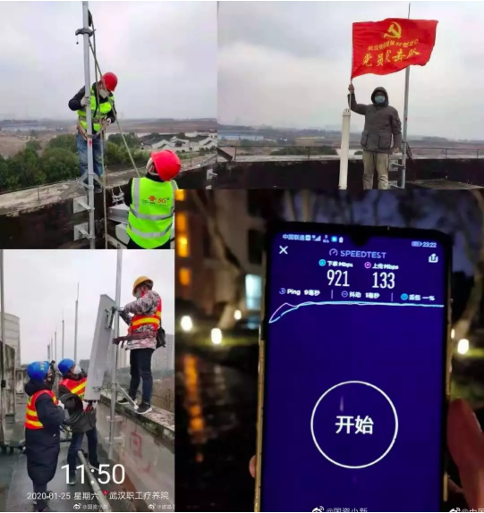 1個(gè)小時(shí)后,由武漢移動(dòng)副總經(jīng)理謝紀(jì)鵬帶領(lǐng)的突擊隊(duì)完成了基站的調(diào)試工作,火神山醫(yī)院首個(gè)5G基站正式開通。