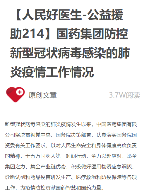 【人民好醫(yī)生】國藥集團(tuán)防控新型冠狀病毒感染的肺炎疫情工作情況