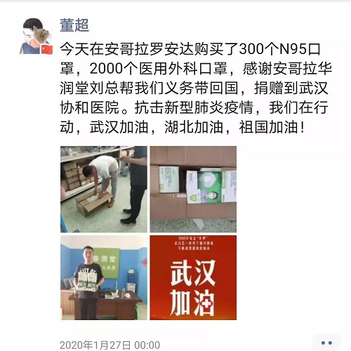 中國能建葛洲壩三峽建設(shè)公司安哥拉凱凱水電站項(xiàng)目部的一對情侶,時(shí)刻關(guān)注著國內(nèi)的疫情防控進(jìn)展。他們聯(lián)系多家當(dāng)?shù)厣虘魺o果,后在安哥拉華潤實(shí)業(yè)公司負(fù)責(zé)人處購買2萬只醫(yī)用外科口罩,另購買了300只N95口罩、2000只普通醫(yī)用外科口罩運(yùn)往國內(nèi)。