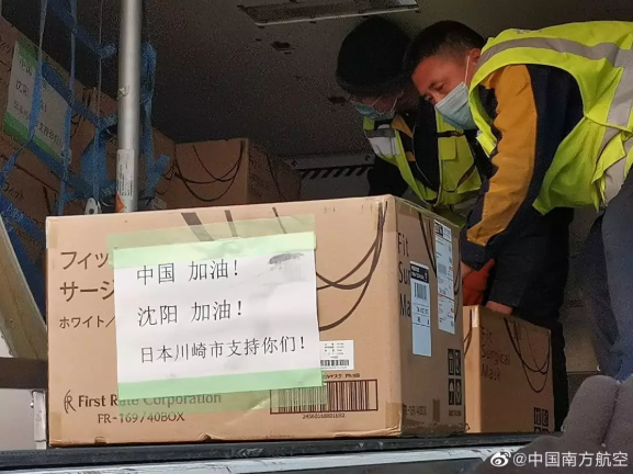 1月31日下午,南航CZ628東京-沈陽航班搭載日本川崎市捐贈(zèng)的8萬只醫(yī)用口罩抵達(dá)沈陽。南航提供免費(fèi)運(yùn)輸,并開辟綠色通道優(yōu)先保障。