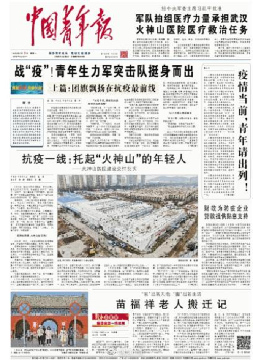 “疫情就是命令,防控就是責(zé)任”!中央企業(yè)團(tuán)工委迅速與團(tuán)中央辦公廳、宣傳部等各相關(guān)部門以及中國青年報、中國青年雜志等媒體取得聯(lián)系,建立信息報送通道及工作微信群。中國青年報武漢前方報道組在1月24日發(fā)出《中青報直擊:全國人民在吃年夜飯,他們在建“武漢小湯山”》,《武漢“小湯山”醫(yī)院開工,冒雨建設(shè)的員工90%以上是90后》等專題文章,對參與前方一線建設(shè)中的中建三局青年突擊隊進(jìn)行了特別報道,引發(fā)全社會青年的廣泛關(guān)注。