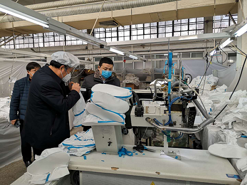 2月7日,郝鵬深入國(guó)機(jī)集團(tuán)、新興際華集團(tuán)等供應(yīng)保障重點(diǎn)醫(yī)療防控物資的部分央企調(diào)研,強(qiáng)調(diào)要不惜代價(jià)分秒必爭(zhēng),緊急轉(zhuǎn)產(chǎn)全力支援防控一線。郝鵬同國(guó)機(jī)集團(tuán)所屬生產(chǎn)口罩、防護(hù)服原材料無(wú)紡布的湖北仙桃恒天嘉華非織造公司,新興際華集團(tuán)所屬生產(chǎn)防護(hù)服的河北石家莊際華三五零二職業(yè)裝公司生產(chǎn)車間視頻連線,詳細(xì)了解企業(yè)產(chǎn)能產(chǎn)量、有哪些困難等,對(duì)企業(yè)緊急購(gòu)買醫(yī)療物資生產(chǎn)設(shè)備,改造原有生產(chǎn)線,積極申請(qǐng)相關(guān)資質(zhì)加快生產(chǎn)的做法給予充分肯定,強(qiáng)調(diào)要堅(jiān)持質(zhì)量第一,保持戰(zhàn)時(shí)狀態(tài),急防疫一線之所急,抓緊改造轉(zhuǎn)產(chǎn)、達(dá)產(chǎn)擴(kuò)產(chǎn),盡力排產(chǎn)滿產(chǎn)。