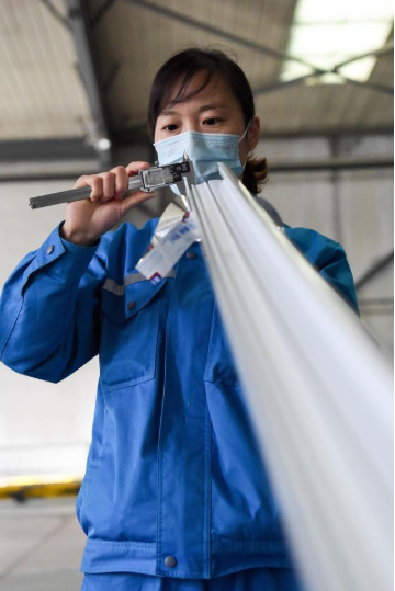 新華社照片,烏魯木齊,2020年2月22日 新疆烏魯木齊:防疫不松勁 復(fù)工干勁足 2月22日,在新疆海螺型材有限責(zé)任公司生產(chǎn)車間,工作人員檢驗(yàn)產(chǎn)品質(zhì)量。 連日來(lái),新疆烏魯木齊部分企業(yè)在確保做好防疫工作的前提下,安全有序復(fù)工,復(fù)工企業(yè)主要以電力、熱力、食品、化工企業(yè)等急需物資重點(diǎn)企業(yè)以及生活保障企業(yè)為主。 新華社記者 丁磊 攝