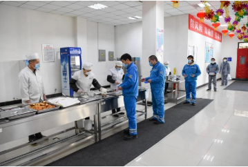 新華社照片,烏魯木齊,2020年2月22日 新疆烏魯木齊:防疫不松勁 復(fù)工干勁足 2月22日,在新疆海螺型材有限責(zé)任公司職工食堂,工作人員排隊(duì)打飯。 連日來(lái),新疆烏魯木齊部分企業(yè)在確保做好防疫工作的前提下,安全有序復(fù)工,復(fù)工企業(yè)主要以電力、熱力、食品、化工企業(yè)等急需物資重點(diǎn)企業(yè)以及生活保障企業(yè)為主。 新華社記者 丁磊 攝