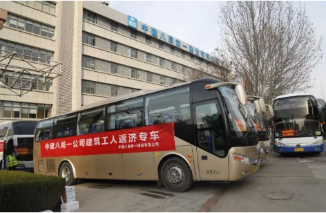 2月19日下午3時45分,濟南市首批6輛建筑工人返濟“點對點”專車駛出中建八局一公司院內(nèi),前往江蘇、河南,接回近200名農(nóng)民工兄弟返回濟南投入生產(chǎn)。
