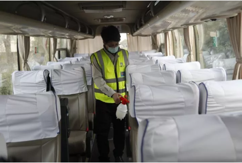 除了登記、檢查、測溫,根據(jù)要求,返濟專車滿載率不超過50%,確保乘客之間保持一定的距離,乘客隔位、分散就坐,乘車人員、隨車人員和駕駛員要佩戴口罩。運輸過程中人員用餐實行分餐制。