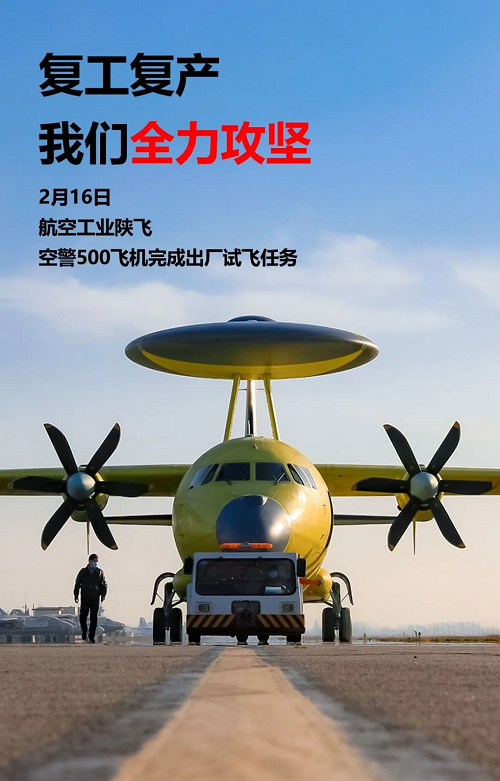 2月16日,航空工業(yè)陜飛完成對空警500飛機首飛任務(wù)。