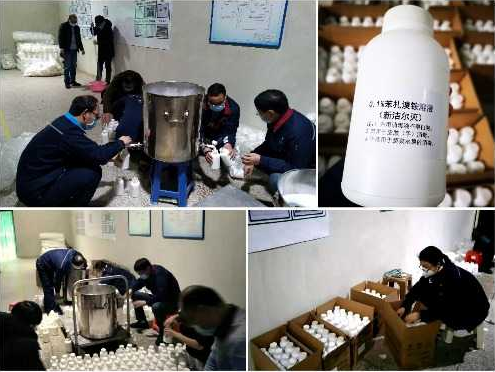 夏夢霄、許玉潔等幾名青年團員自發(fā)組建了青年后勤小分隊,為全司職工配制、分發(fā)84消毒液和新潔爾滅手消毒液共計2200余瓶,為保障職工和家人身體健康以及公司穩(wěn)定生產(chǎn)貢獻自己的力量。
