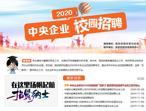 面向畢業(yè)生的校園招聘也是中央企業(yè)關(guān)注的重點,2020屆高校畢業(yè)生規(guī)模將達到874萬人的歷史最高點。大多數(shù)央企在春節(jié)前啟動了應(yīng)屆畢業(yè)生校招工作。目前這些企業(yè)正在按照計劃推進后續(xù)工作,不因疫情變化影響之前既定的招聘安排。國務(wù)院國資委網(wǎng)站此前也推出“2020中央企業(yè)校園招聘”專題,加強抗疫期間中央企業(yè)招聘信息的集中發(fā)布。