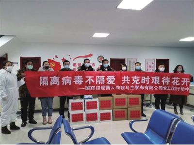據(jù)了解,國大藥房一直關(guān)注著疫情防控形勢。在得知新體路街道抗擊疫情一線的工作人員缺少消毒藥品、防護(hù)物資的難題時,國大藥房主動伸出援手,從庫房中拿出5箱醫(yī)用酒精、5箱84消毒液和5盒防護(hù)手套,捐贈給新體路街道辦事處,助力疫情防控工作。