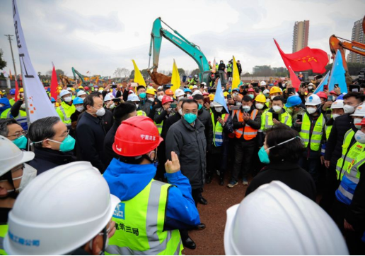 2月1日,中建集團(tuán)黨組書記、董事長周乃翔趕赴武漢,與鄭學(xué)選一起調(diào)研火神山醫(yī)院工地。周乃翔提出,要不辱使命、不負(fù)眾望、不惜代價(jià),以高標(biāo)準(zhǔn)、高質(zhì)量圓滿建成火神山醫(yī)院的實(shí)際行動(dòng),為打贏疫情防控阻擊戰(zhàn)貢獻(xiàn)中建力量。