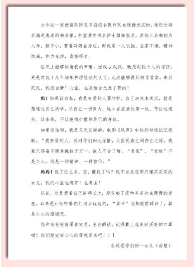 鞍鋼總醫(yī)院援鄂醫(yī)療隊護士曲慧寫給母親的家書