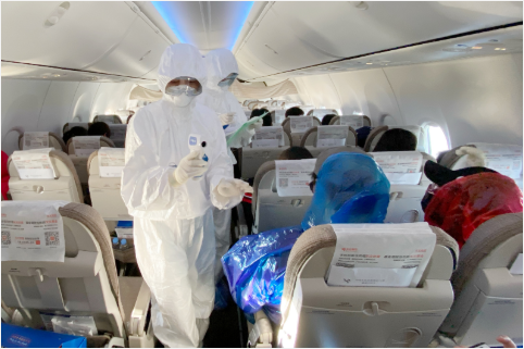 東航在回程航班機(jī)艙門口測(cè)量每一位旅客的體溫,對(duì)體溫超過(guò)標(biāo)準(zhǔn)的旅客進(jìn)行重點(diǎn)監(jiān)控;地面及空中服務(wù)部門按照當(dāng)?shù)匦l(wèi)生部門和機(jī)場(chǎng)的防疫要求,嚴(yán)格落實(shí)旅客體溫檢測(cè)和信息申報(bào);航班中發(fā)現(xiàn)疑似病例或發(fā)熱旅客,機(jī)組在航班落地前半小時(shí)依據(jù)目的地口岸要求和現(xiàn)有流程通知目的地機(jī)場(chǎng)海關(guān);航班中設(shè)立后客艙最后三排右側(cè)座位作為航空器隔離點(diǎn),盡可能將疑似或發(fā)熱旅客安置在右側(cè)靠窗位置,同時(shí)將后部右側(cè)盥洗室作為隔離人員專用,以避免交叉感染;航班中發(fā)現(xiàn)疑似病例或發(fā)熱旅客簡(jiǎn)化服務(wù)程序,安排專門乘務(wù)員穿戴防護(hù)用品為疑似或發(fā)熱旅客服務(wù);對(duì)航班中接觸過(guò)疑似或發(fā)熱旅客的機(jī)組成員,在航班結(jié)束后按照疫情防控要求進(jìn)行醫(yī)學(xué)隔離觀察。