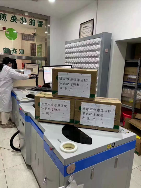國(guó)藥集團(tuán)下屬廣東一方配藥中心人員加班為金銀潭醫(yī)院調(diào)配防治處方。