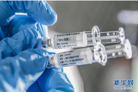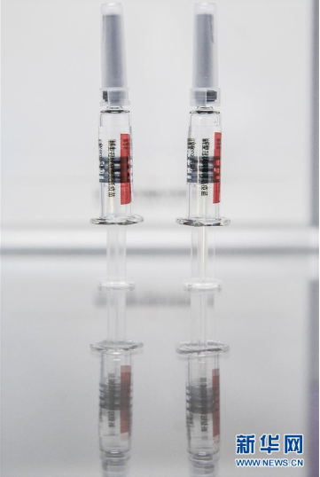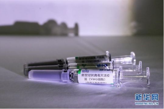 4月10日在國(guó)藥集團(tuán)中國(guó)生物新冠疫苗生產(chǎn)基地拍攝的新型冠狀病毒滅活疫苗樣品。新華社記者 張玉薇 攝
