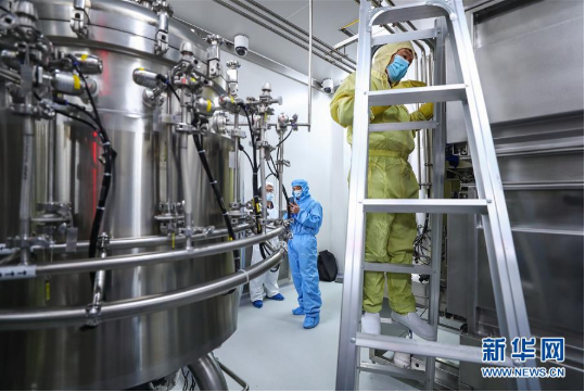 4月10日,工作人員在國(guó)藥集團(tuán)中國(guó)生物新冠疫苗生產(chǎn)基地尚未投產(chǎn)的新型冠狀病毒滅活疫苗生產(chǎn)車間內(nèi)調(diào)試設(shè)備。新華社記者 張玉薇 攝