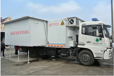 中國航天科工“移動醫(yī)院”裝備涵蓋手術(shù)車、醫(yī)技車、通訊指揮車、水電油保障車、生活車、宿營車等近10種特種車輛,展開后相當于一所二級甲等綜合醫(yī)院,具有機動性好、模塊化組合、展開部署快速、救治功能范圍廣等特征,能夠完成手術(shù)、急診、急救任務(wù),同時可以保障救援工作人員的基本生活所需。