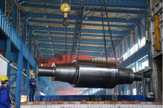 4月10日,在中國一重生產(chǎn)車間,工人在進行生產(chǎn)作業(yè)