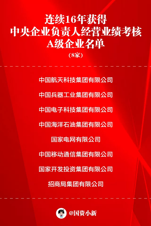 7月20日,國務(wù)院國資委公布了2019年度中央企業(yè)負(fù)責(zé)人經(jīng)營業(yè)績(jī)考核A級(jí)企業(yè)名單。國資小新梳理了歷年A級(jí)企業(yè)名單,國資委對(duì)中央企業(yè)實(shí)施經(jīng)營業(yè)績(jī)考核以來,有8家企業(yè)連續(xù)16個(gè)年度獲得A級(jí)——
