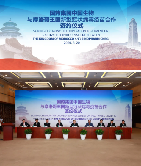 8月20日下午,國藥集團中國生物與摩洛哥王國新型冠狀病毒疫苗合作簽約儀式在北京、拉巴特兩地,以視頻會議方式同步舉行。這是繼獲得阿聯(lián)酋、秘魯臨床試驗批件后的又一重要進展,標志著國藥集團中國生物國際臨床試驗進程全面提速。雙方將通過團結(jié)合作戰(zhàn)勝疫情,為共同構(gòu)建人類衛(wèi)生健康共同體做出不懈努力。