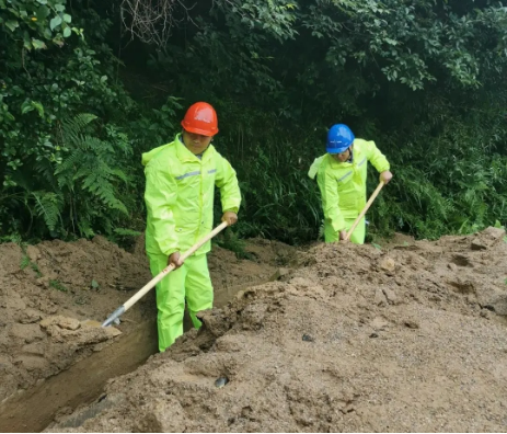 ▲崗位員工正在清理管溝