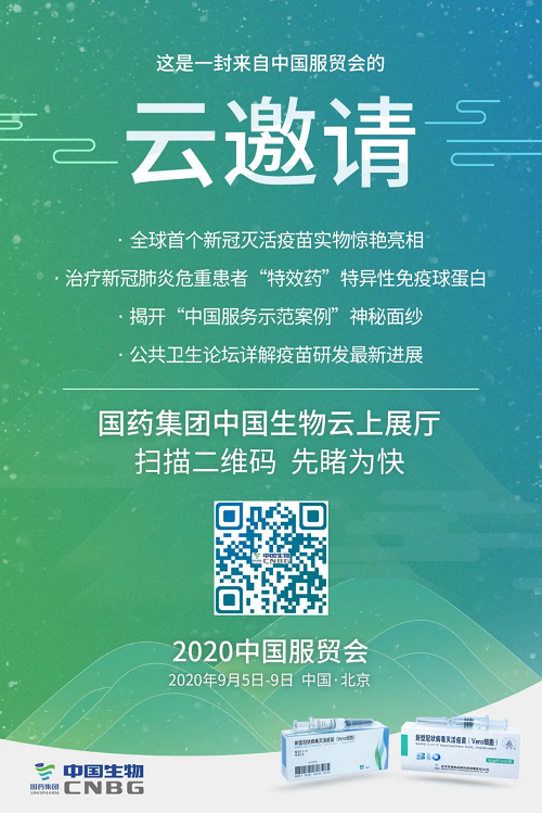 在9月5日-9日于北京舉辦的2020年中國國際服務(wù)貿(mào)易交易會上,受邀在公共衛(wèi)生防疫專題展區(qū)參展的國藥集團中國生物,拿出研制的兩款新冠滅活疫苗+特異免疫球蛋白以“主咖”身份首次驚艷亮相,引來全場乃至全球關(guān)注!