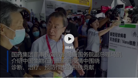 國務(wù)院原副總理馬凱視察了國藥集團中國生物抗疫成果展臺,工業(yè)和信息化部部長肖亞慶陪同參觀。國藥集團董事長劉敬楨向馬凱介紹了中國生物在新冠疫情防控的診斷、治療、預(yù)防等方面作出的突出貢獻。目前,中國生物研發(fā)的兩個新冠滅活疫苗正在阿聯(lián)酋、巴林、秘魯、摩洛哥、阿根廷等10個國家開展Ⅲ期臨床試驗,各方面進展全面領(lǐng)跑全球。