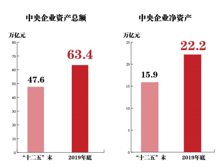 運(yùn)行更穩(wěn)、實(shí)力更強(qiáng)——來自國(guó)務(wù)院國(guó)資委的數(shù)據(jù)顯示,截至2019年底,中央企業(yè)資產(chǎn)總額達(dá)63.4萬億元,比“十二五”末增加15.8萬億元,增長(zhǎng)33.2%;凈資產(chǎn)為22.2萬億元,比“十二五”末增加6.3萬億元,增長(zhǎng)39.9%。