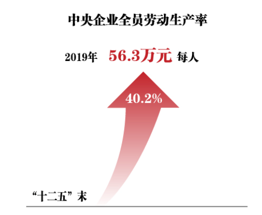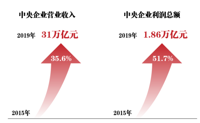 效益提升、布局優(yōu)化——2019年中央企業(yè)實(shí)現(xiàn)營(yíng)業(yè)收入31萬億元、利潤(rùn)總額1.86萬億元,分別比2015年增長(zhǎng)35.6%和51.7%;2019年中央企業(yè)全員勞動(dòng)生產(chǎn)率為每人56.3萬元,比“十二五”末增長(zhǎng)40.2%。國(guó)有資本進(jìn)一步向重要行業(yè)和關(guān)鍵領(lǐng)域集中。
