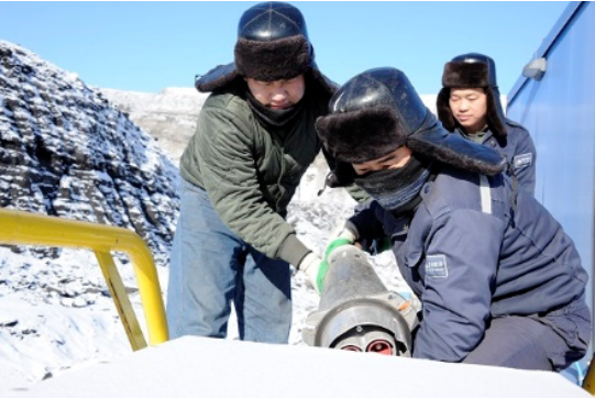 國家能源集團勝利能源公司露天礦供電隊動力班員工把學(xué)習(xí)十九屆五中全會精神落實在行動中,圖為員工在嚴寒中加緊施工作業(yè)。