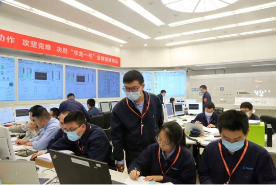 中核集團三代核電技術(shù)“華龍一號”全球首堆主控室里的“核電黃金人”——操縱員們正在刻苦攻關(guān)。