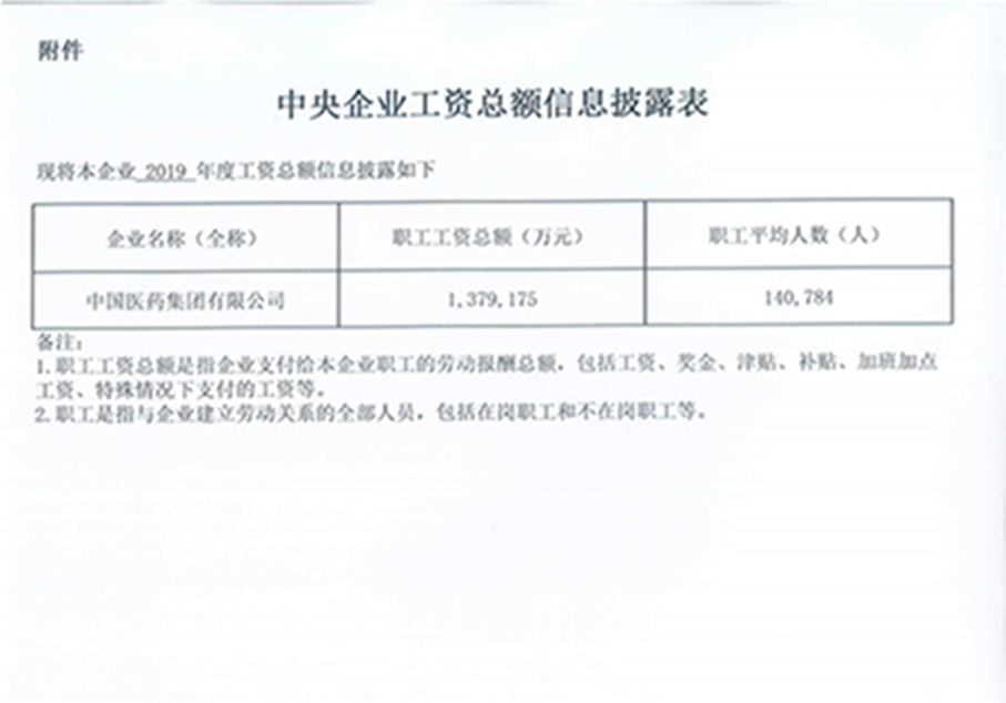 國(guó)藥集團(tuán)2019年度工資總額信息披露表