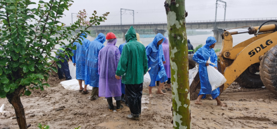 ▲7月20日下午,中國電建所屬水電十一局鄭州賈魯河綜合治理項目在鄭州市水利局和公司的統(tǒng)一組織安排下,共出動人員100多名,兩臺挖掘機、兩臺裝載機,搶險編織袋160000個,到中牟賈魯河段進行搶險,加固河堤。