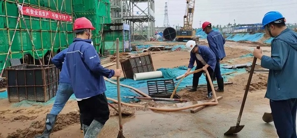 ▲受強降雨影響,中國能建西北電建鄭州航空港項目施工現(xiàn)場多處積水,項目部啟動應急預案,開啟排水泵24小時不間斷排水,通過堵截圍擋對水流方向進行疏導。項目部積極備戰(zhàn),目前防汛物資充足,全體人員齊心協(xié)力奮戰(zhàn)一線,全面排查暴雨對項目安全方面造成的影響,逐一消除隱患,確保安全度汛。
