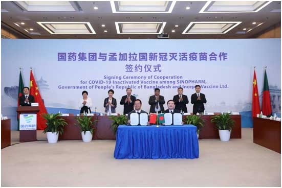 【環(huán)球網(wǎng)綜合報(bào)道】8月16日晚,中國(guó)國(guó)藥集團(tuán)與孟加拉國(guó)政府在北京、達(dá)卡兩地以視頻方式簽署新冠滅活疫苗分裝合作備忘錄,推動(dòng)月產(chǎn)500萬(wàn)劑國(guó)藥新冠疫苗分裝項(xiàng)目在孟加拉落地,助力孟加拉打贏新冠疫情防控阻擊戰(zhàn)。
