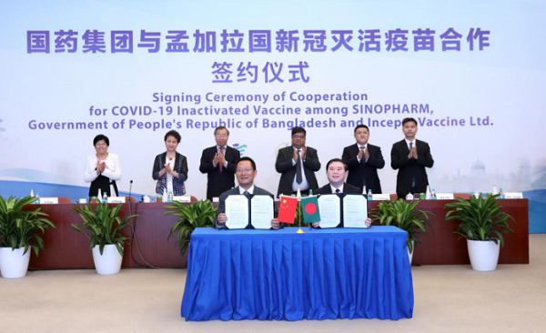 國(guó)藥集團(tuán)與孟加拉國(guó)正式簽署新冠滅活疫苗合作協(xié)議。國(guó)藥集團(tuán)供圖、