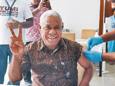 圖為7月13日,在巴布亞新幾內(nèi)亞首都莫爾茲比港,一名男子接種中國疫苗。