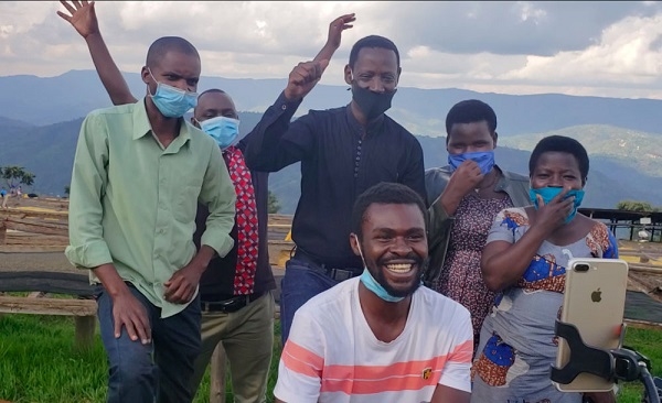 2020年5月14日,盧旺達咖啡農(nóng)觀看直播錄像,看到3000斤咖啡瞬間賣光后歡呼。