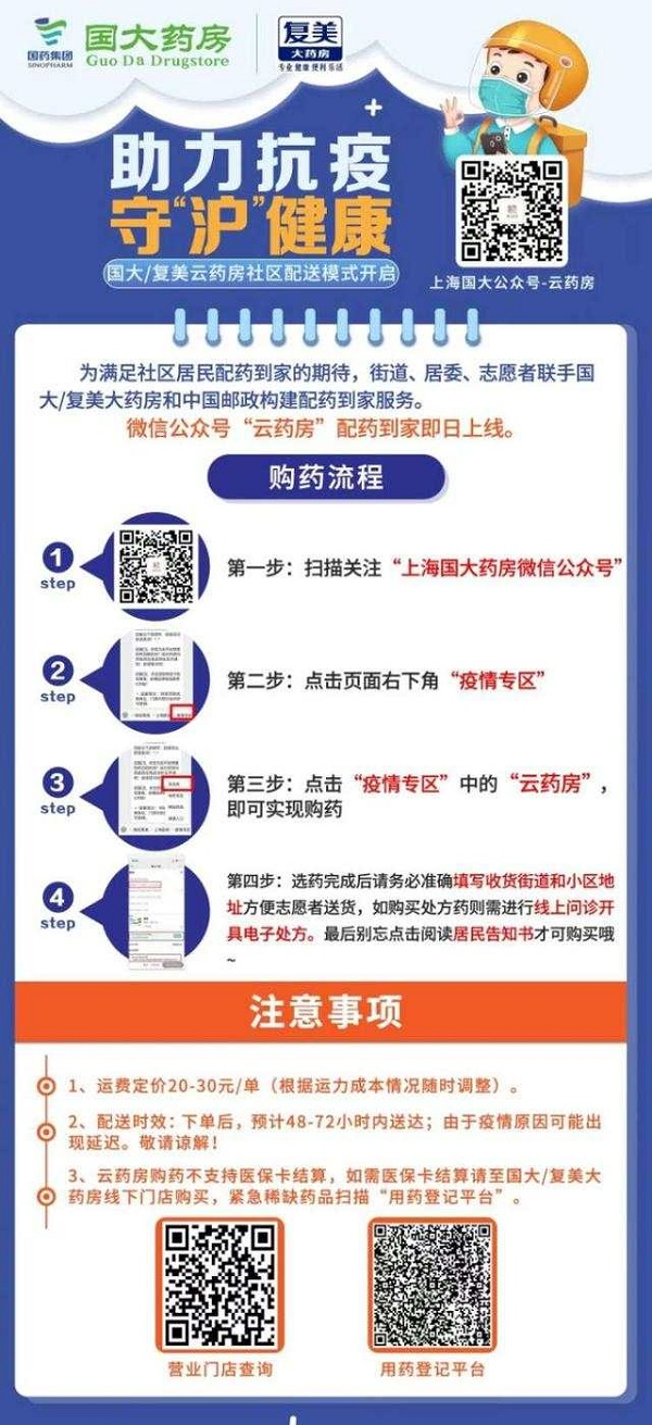 豫園街道是“云藥房”在黃浦的首個試點(diǎn)街道,于4月17日率先開通服務(wù)。居民掃描關(guān)注“上海國大藥房”微信公眾號,點(diǎn)擊頁面右下角“疫情專區(qū)”,在菜單欄上找到“云藥房”,點(diǎn)開后即可購藥。